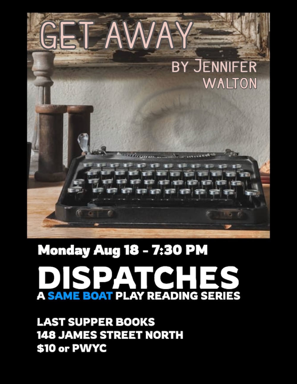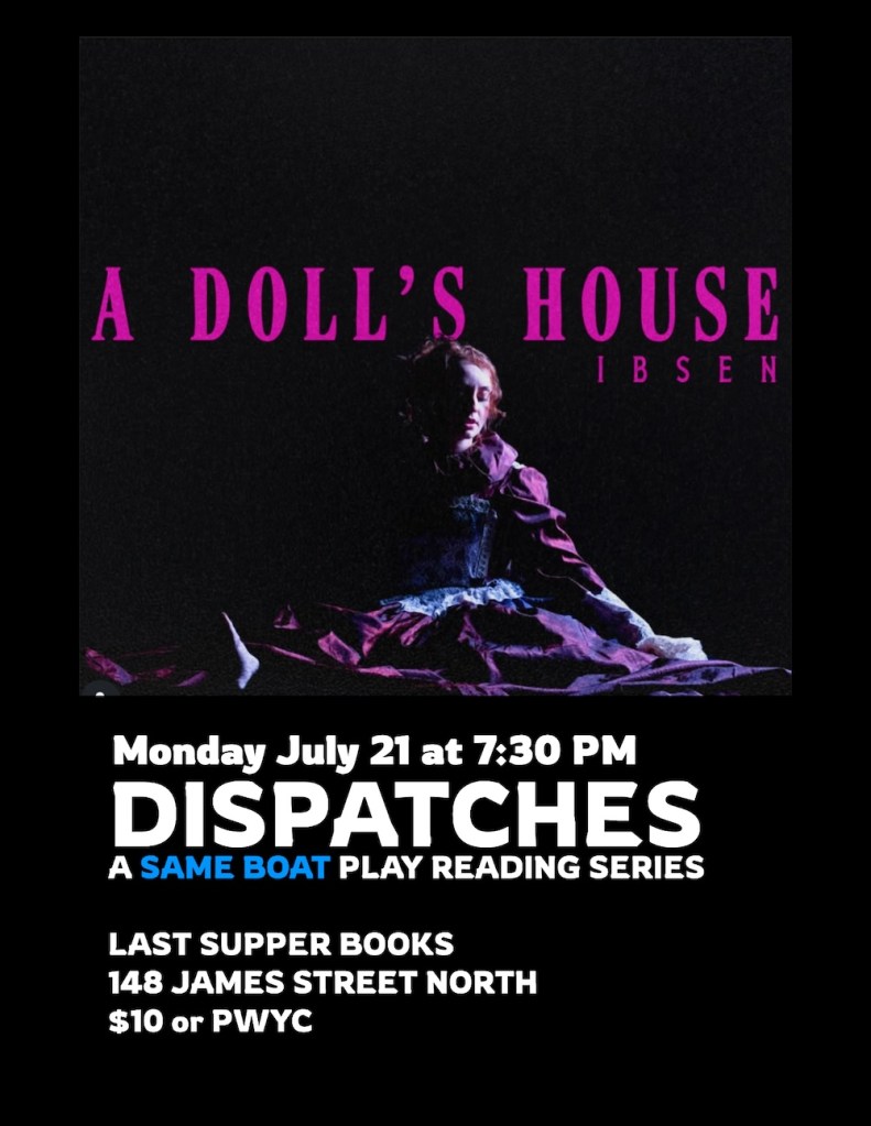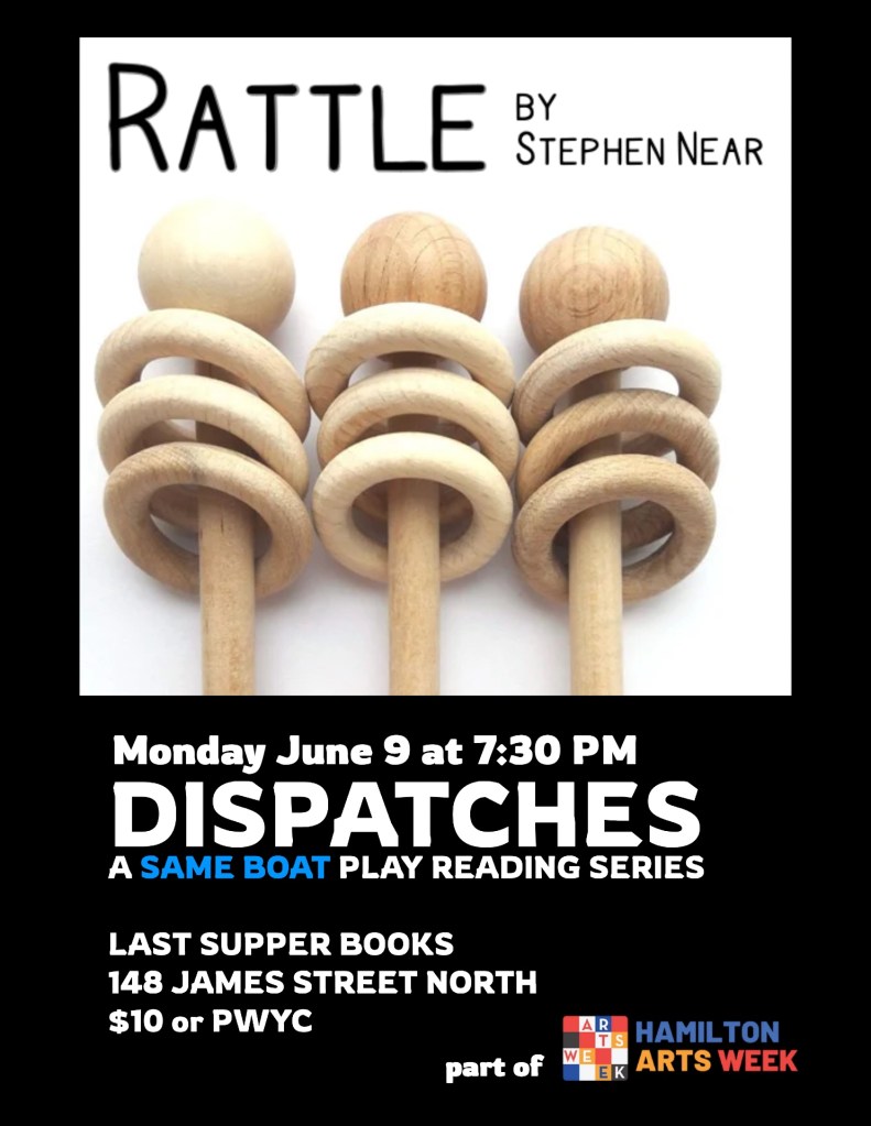 Same Boat Theatre launches our newest project with the Dispatches Play Reading Series. Once a month, Same Boat Theatre will read a play – either by an established play or a new script – for a public presentation. The readings will be a Pay-What-You-Can where all are welcome to drop in and listen as a company of local actors read a part in the chosen play. Hosted at Hamilton’s newest used bookstore, Last Supper Books on James Street, Dispatches offers a laid-back opportunity for our company to publicly present work and engage in talkback discussion with audiences in the community.