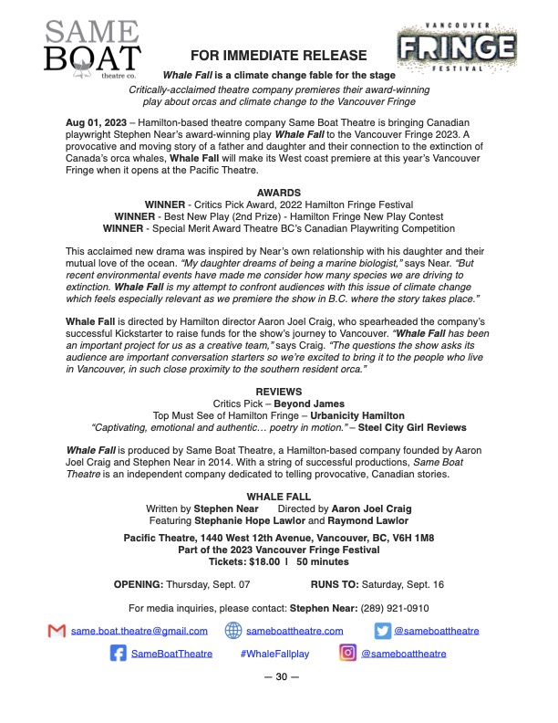“Whale Fall pushes audiences to ponder deep and difficult questions about climate change through the intimate lens of a father-daughter story.” – Preview by Steel City Girl Reviews